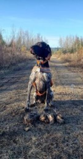 We are expecting very strong conformation with plenty of substance. Tons of natural ability with retrieves and recovering game with both Sire and Dam. Royal and Jager are incredibly powerful in water, and efficient in their forest search. They both possess extremely calm characters, intelligence and predator sharpness. Nose sensitivity is keen in each. Both are exceptional and actively blood tracking, Jager in Maine and Royal in Bucks County, Pennsylvania.