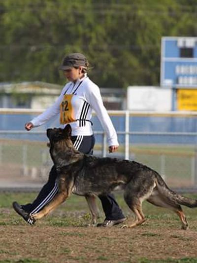 Sondra and Inka earn their SchH3 with 281 points (97 in protection) under SV judge Helmut Rueppell